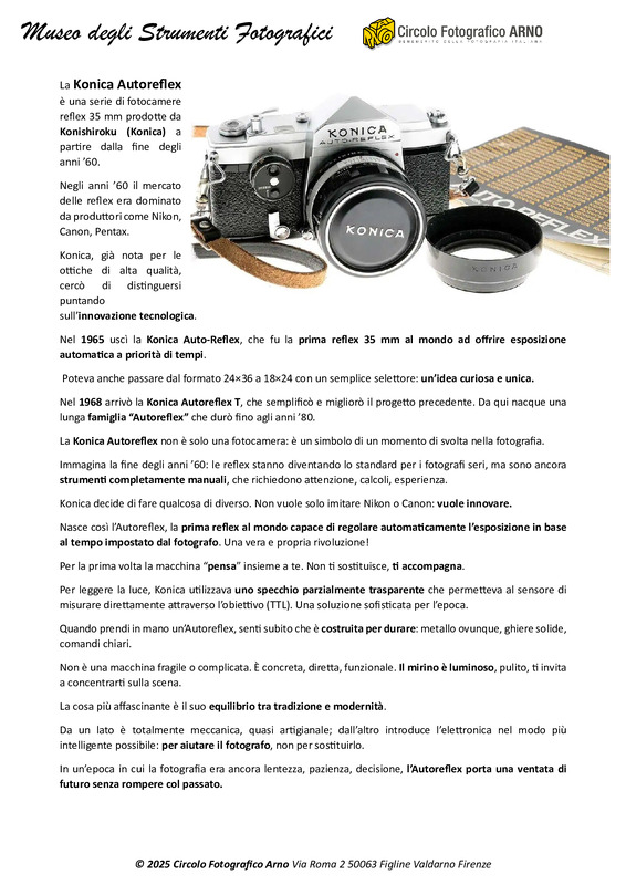 La Konica Autoreflex è una serie di fotocamere reflex 35 mm prodotte da Konishiroku (Konica) a partire dalla fine degli anni ’60.