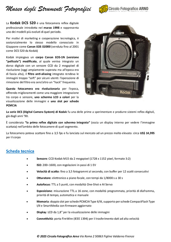 La Kodak DCS 520 è una fotocamera reflex digitale professionale introdotta nel marzo 1998 e rappresenta uno dei modelli più evoluti di quel periodo.